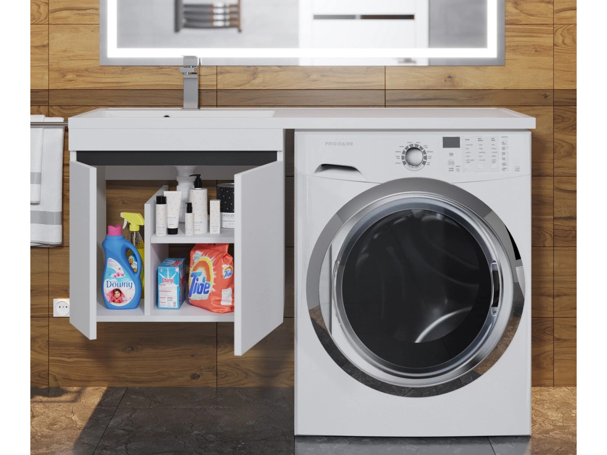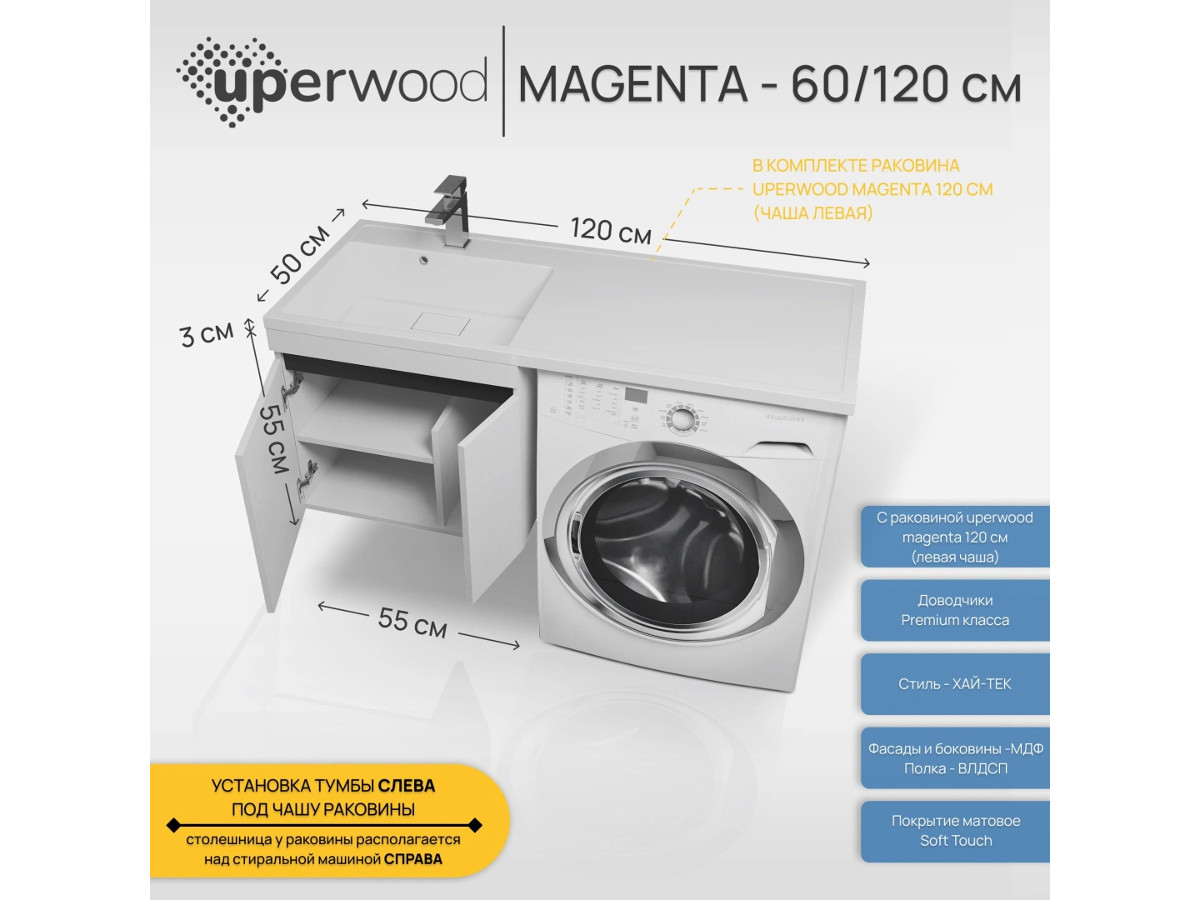 - Тумба с раковиной Uperwood Magenta 60-120 см подвесная белая/графит с дверцами левая