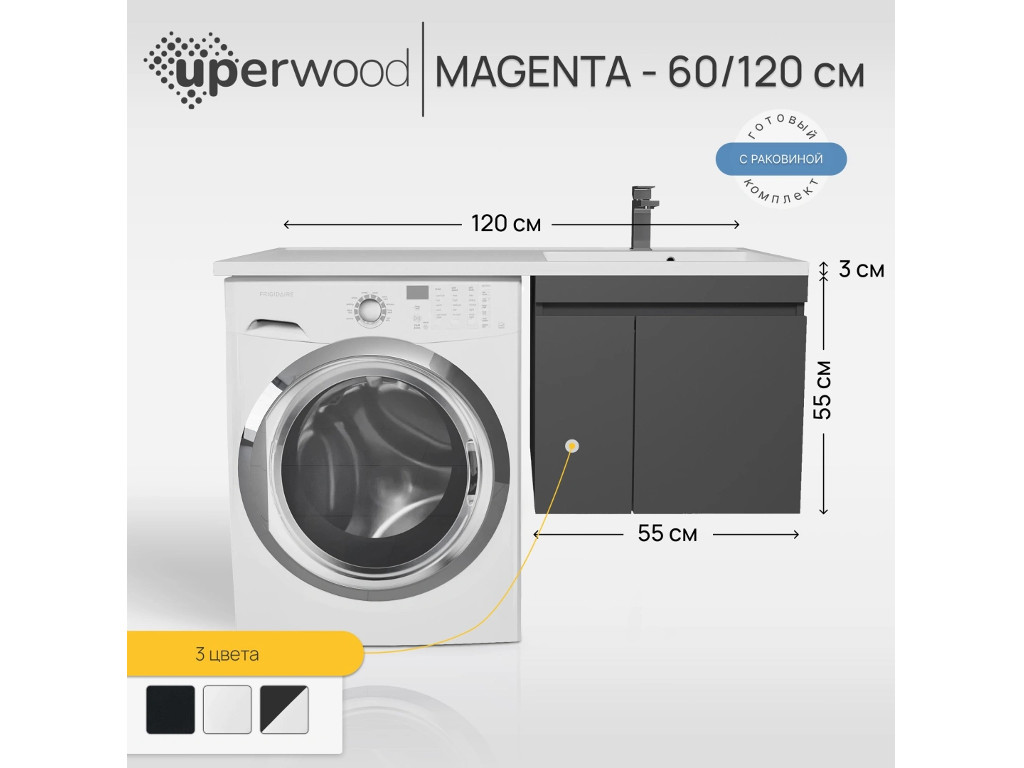 - Тумба с раковиной Uperwood Magenta 60-120 см подвесная черная с дверцами правая