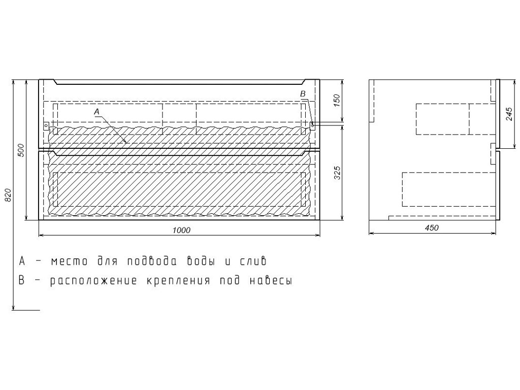- Тумба с раковиной Uperwood Tanos матовая белая/графит 100 см