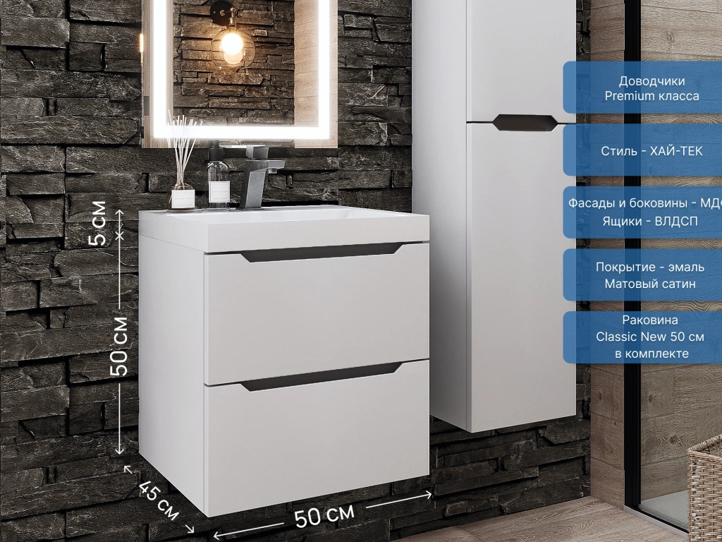 - Тумба с раковиной Uperwood Tanos NEW 50 см белая/графит