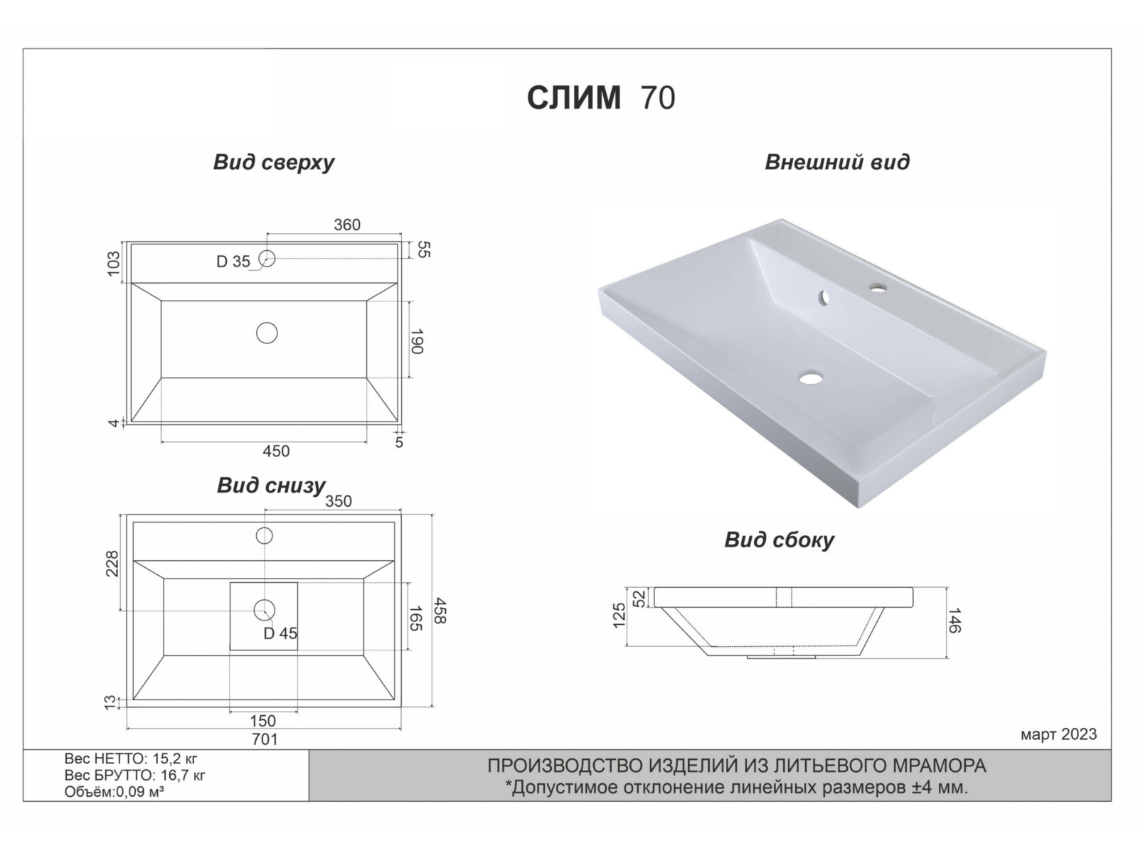 Тумба Сохо 70 напольная 2 ящика раковина Слим 70