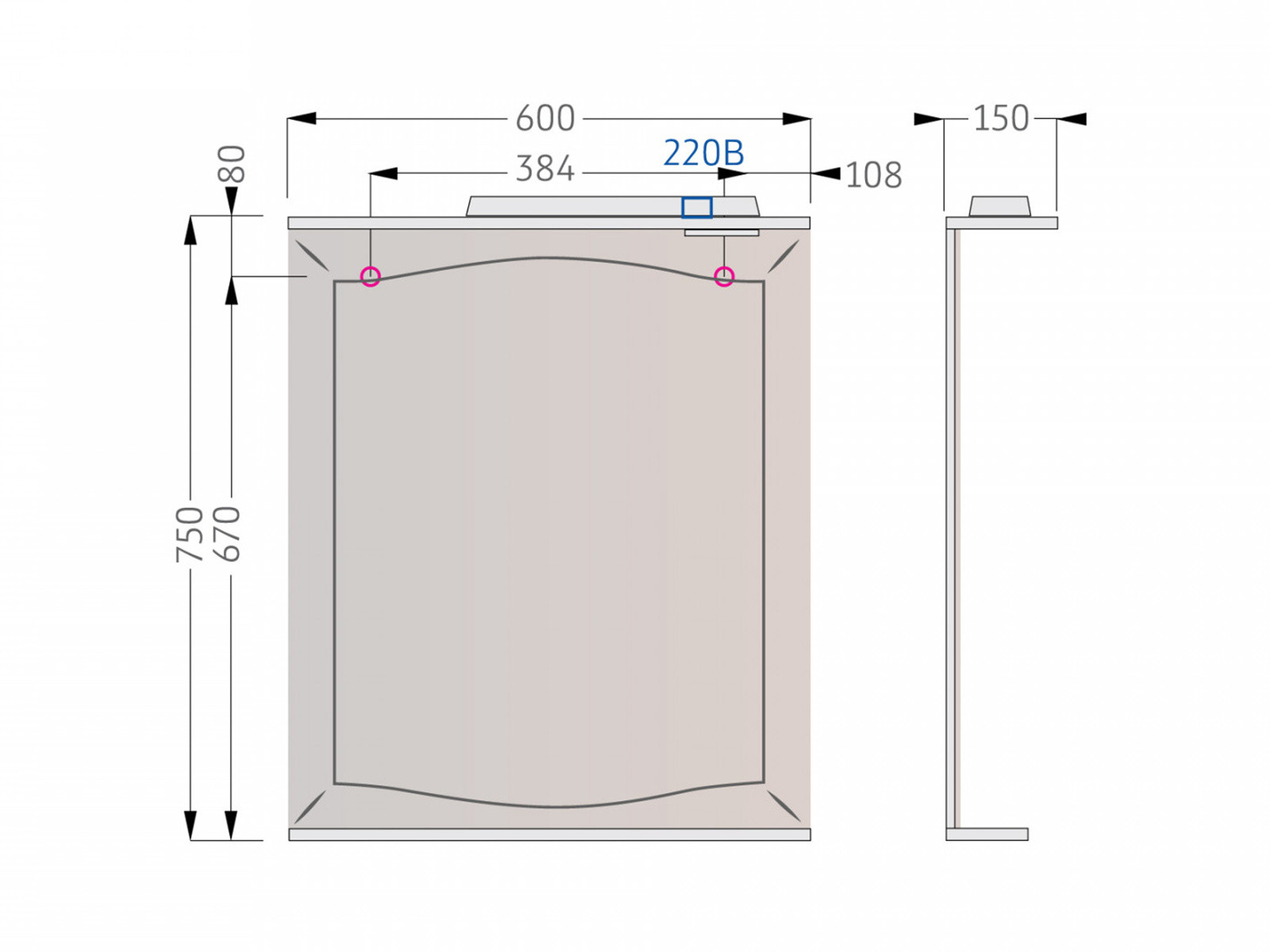 - Зеркало с подсветкой и полкой Monaco 60-01