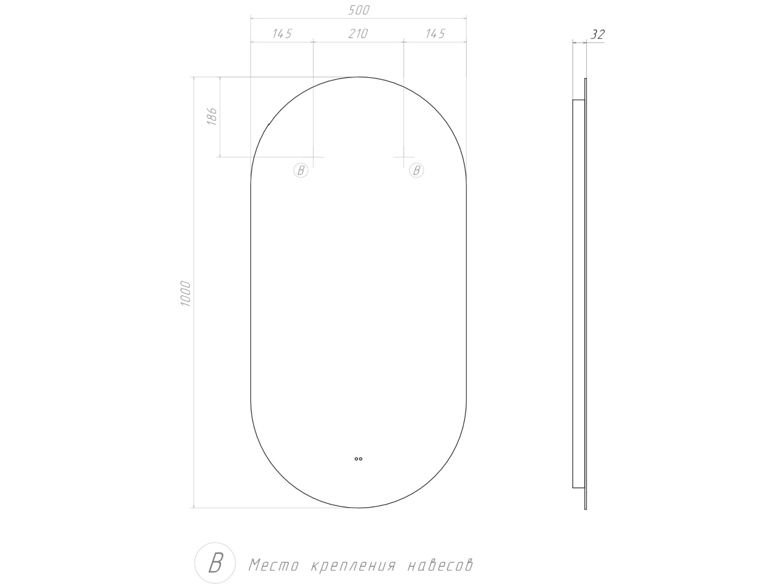 Размеры ШхВхГ: 500x1000x32 мм