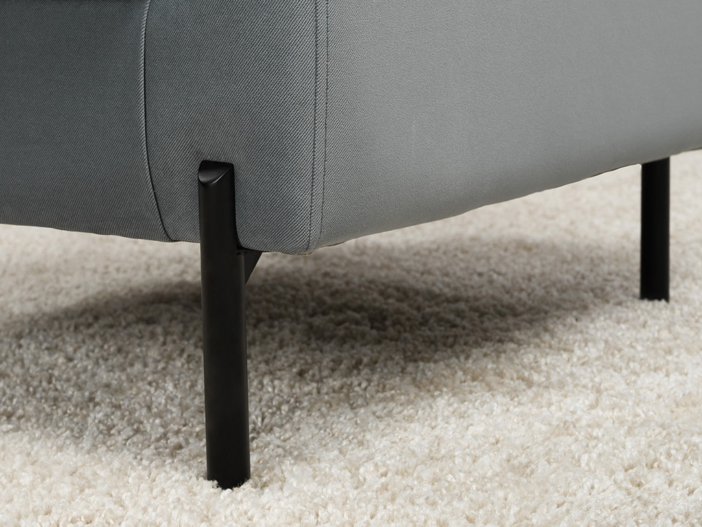 Декоративная утяжка на спинке кресла, декоративная подушка в цвете кресла, металлические опоры переходят в декоративный элемент подлокотника