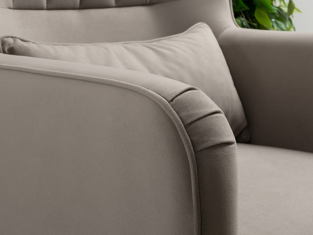 Декор: Вертикальная объемная стежка в средней части спинки; кант на спинке, подлокотниках и декоративной подушке