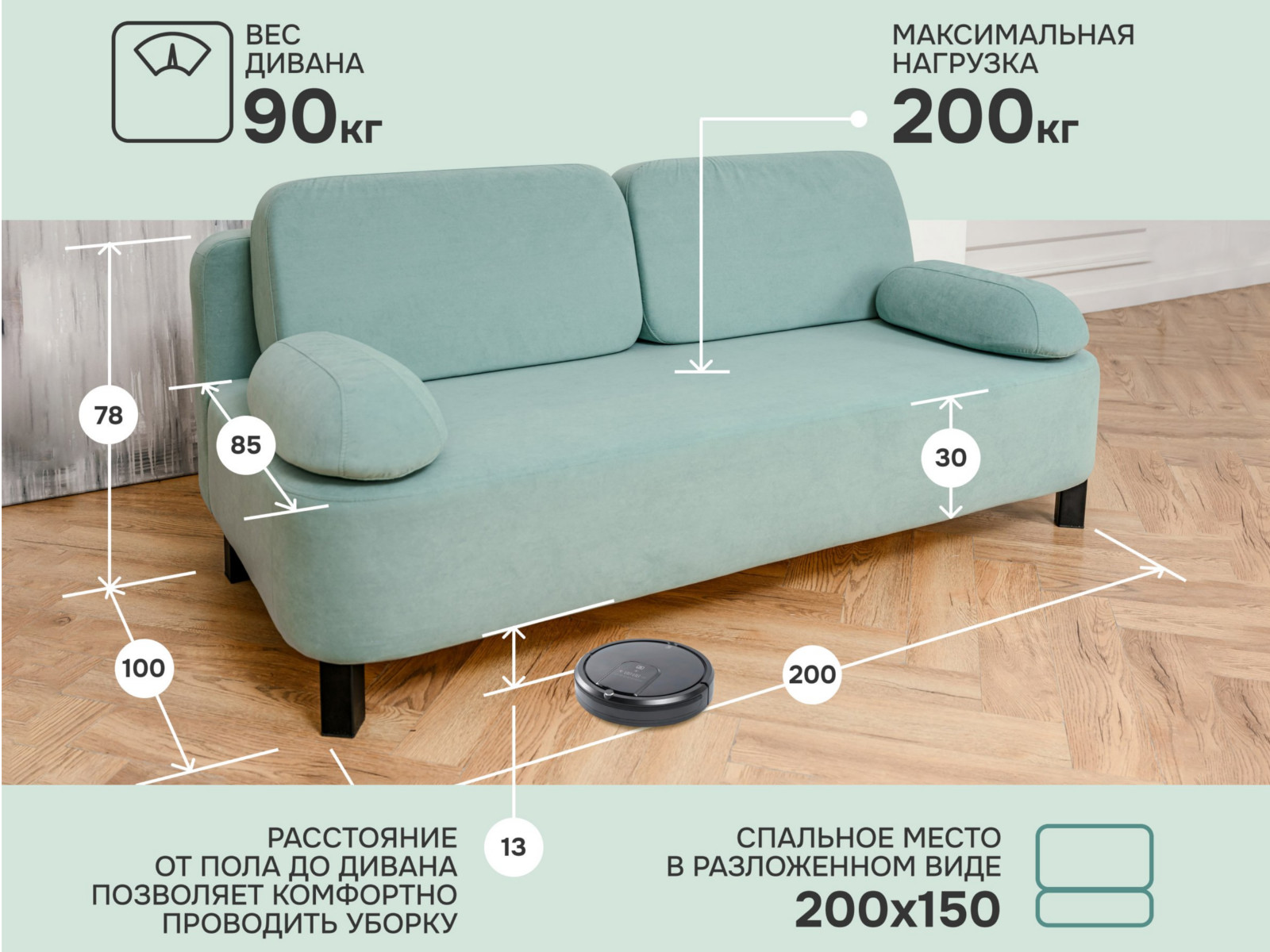 - Спальное место: 1500х2000 мм