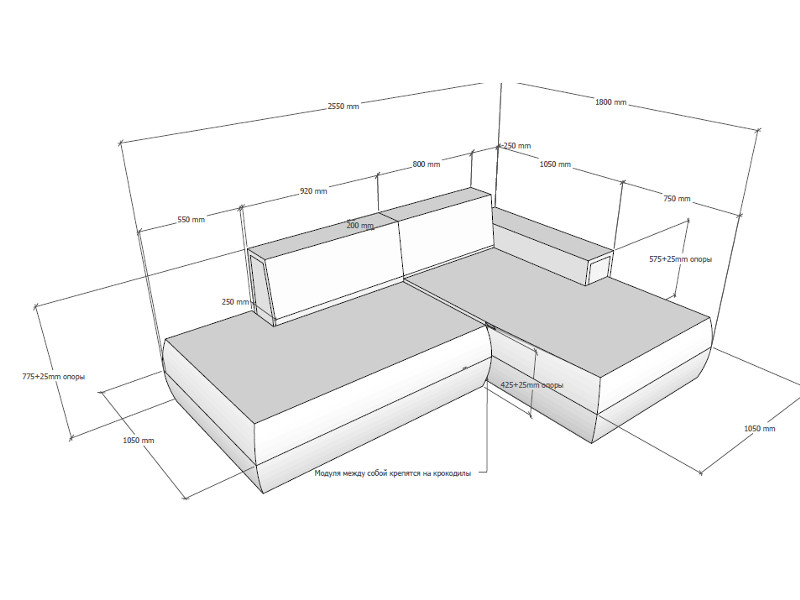 Мебель изготавливается под заказ по индивидуальным размерам, обмену и возврату не подлежит.