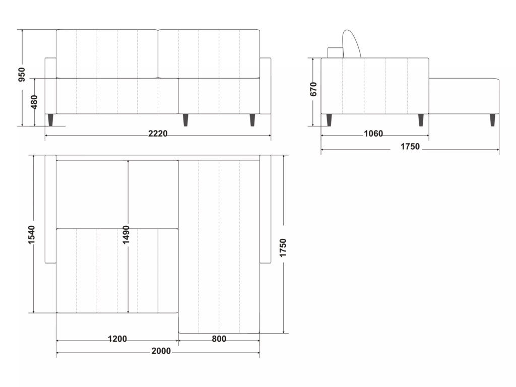 Размеры дивана (мм):  2220*1750*950