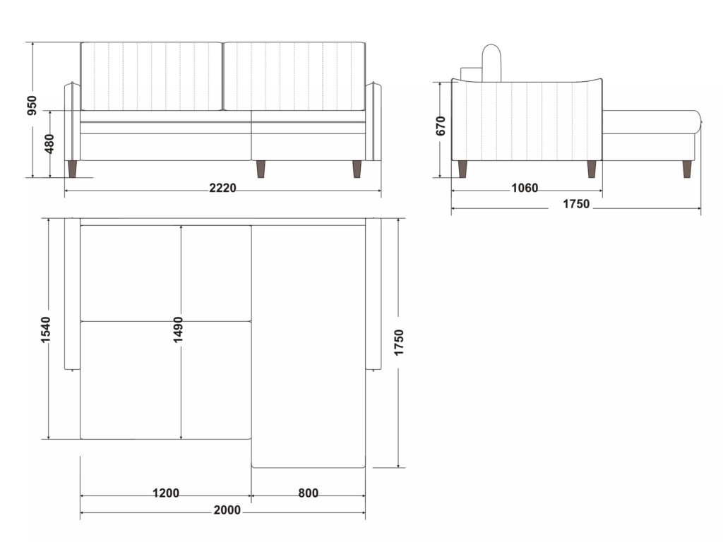 Размеры дивана (мм):  2220*1750*950