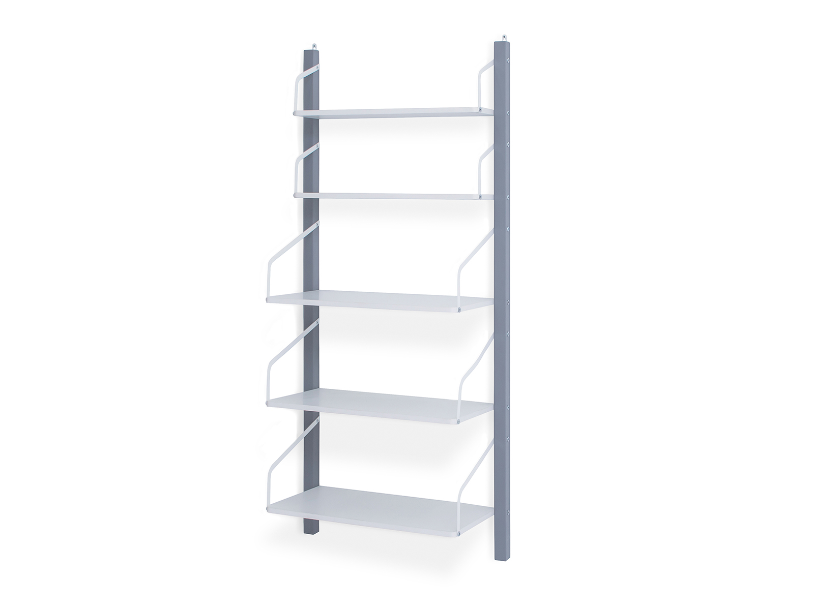 Конструкция детского стеллажа навесная и крепится к стене с помощью двух надежных металлических мебельных навесов. Стеллаж состоит из 5 полок. Высокопрочная конструкция стеллажа позволяет выдержать нагрузку на одну полку до 10 кг.