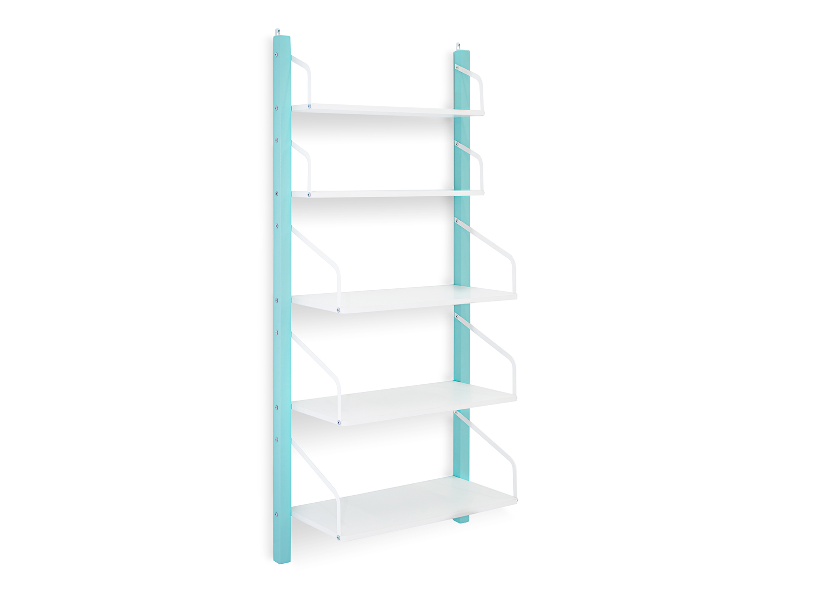 Конструкция детского стеллажа навесная и крепится к стене с помощью двух надежных металлических мебельных навесов. Стеллаж состоит из 5 полок. Высокопрочная конструкция стеллажа позволяет выдержать нагрузку на одну полку до 10 кг.