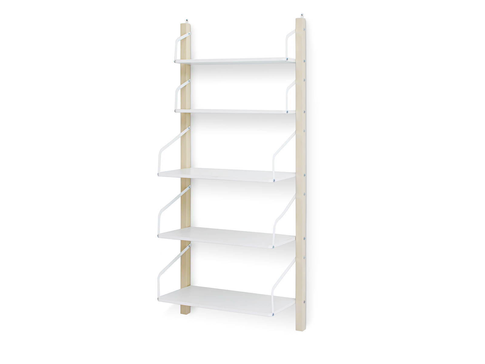 Конструкция детского стеллажа навесная и крепится к стене с помощью двух надежных металлических мебельных навесов. Стеллаж состоит из 5 полок. Высокопрочная конструкция стеллажа позволяет выдержать нагрузку на одну полку до 10 кг.