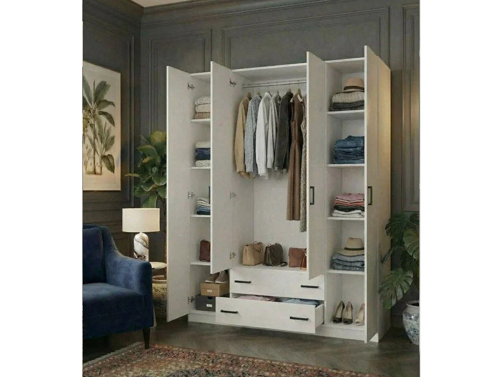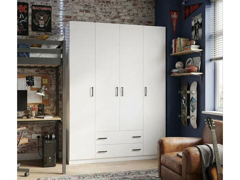 - Шкаф 4-хстворчатый с ящиками Турин белый