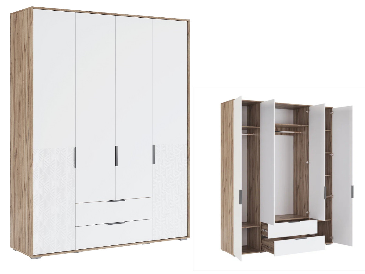 - Шкаф имеет четыре распашных фасада на четырехшарнирных петлях фирмы "Titus" (Словения) с доводчиком и два выкатых ящика на шариковых направляющих полного выдвижения;