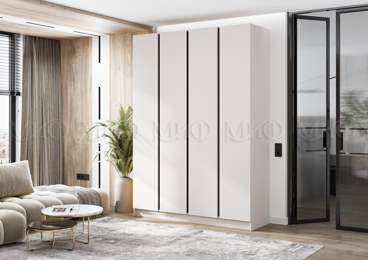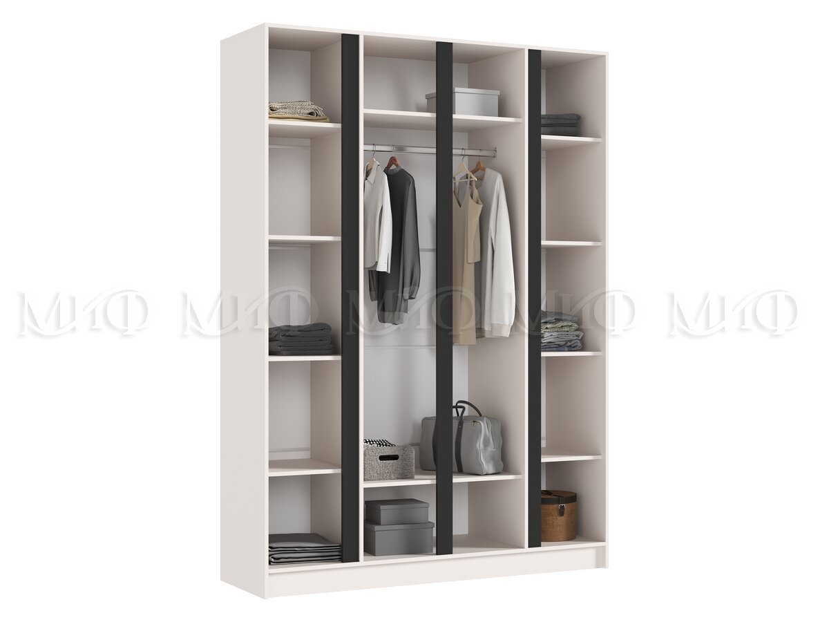 - Шкаф четырехстворчатый Келвин (1600) Кашемир-вставка черная