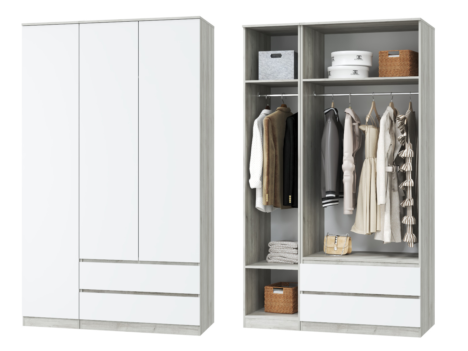 Шкаф для одежды трехдверный Лори дуб серый, белый