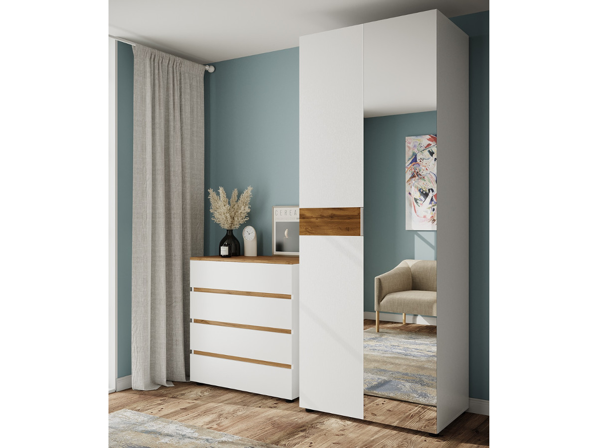 - Шкаф двухдверный 800 Лотос с зеркалом Дуб крафт