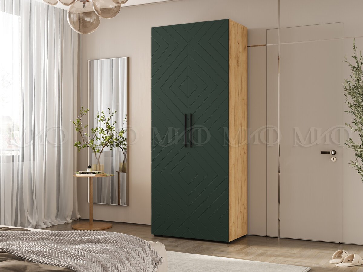 - Шкаф двухстворчатый (900) Флэш Браш Мени Грин, Дуб Крафт