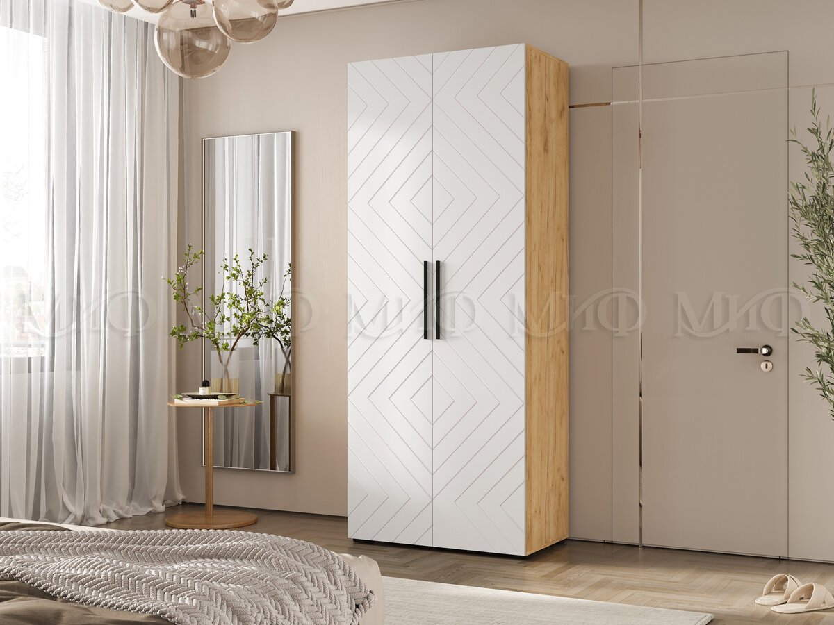 Шкаф двухстворчатый (900) Флэш Браш Вайт, Дуб Крафт