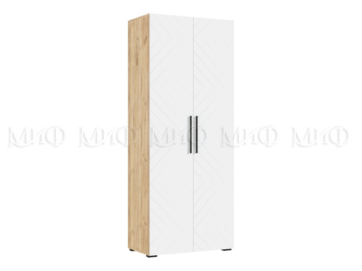 - Шкаф двухстворчатый (900) Флэш Браш Вайт, Дуб Крафт