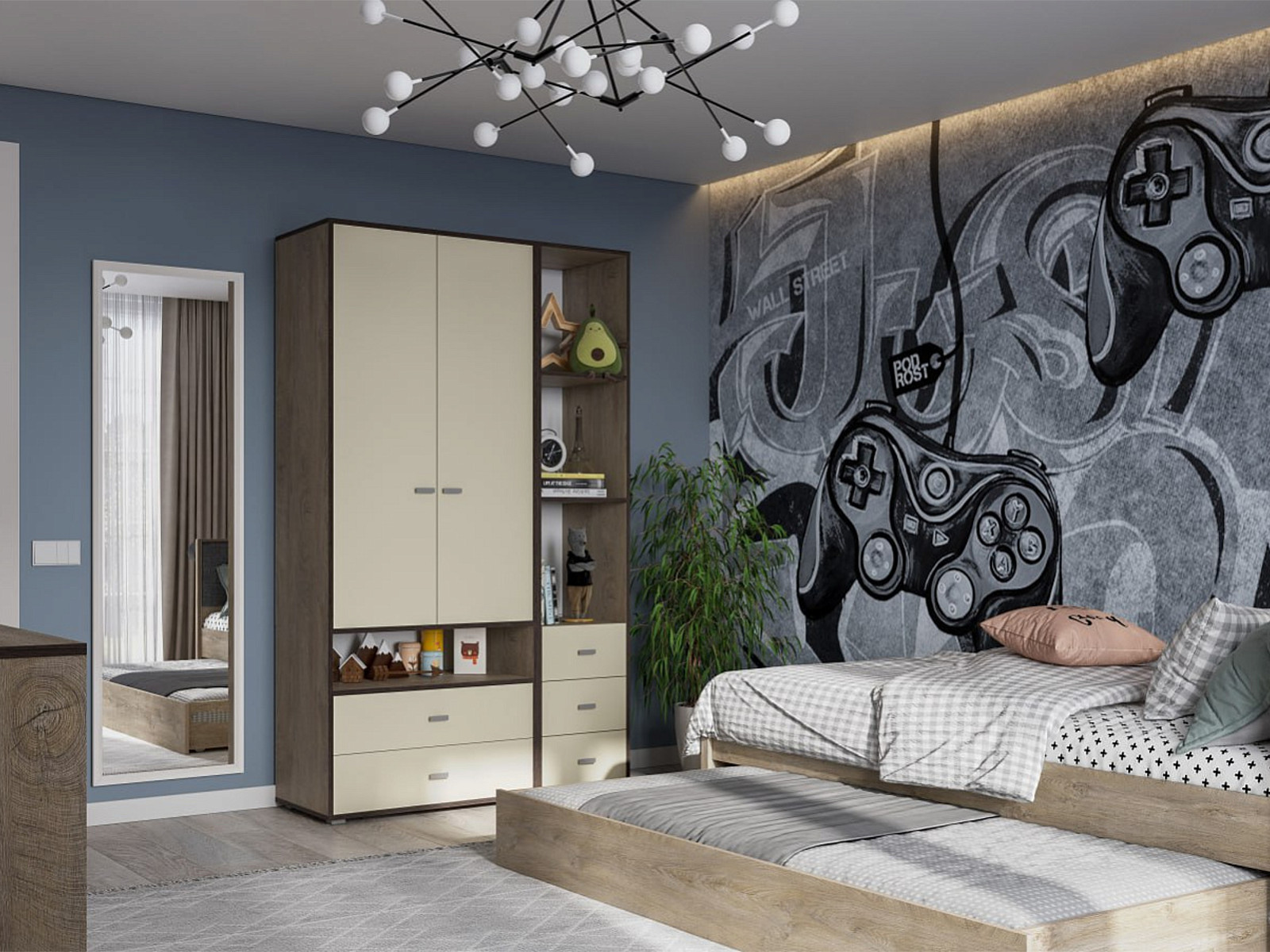 - Шкаф двухстворчатый Этна шк1 Дуб Эндгрейн/Алебастр
