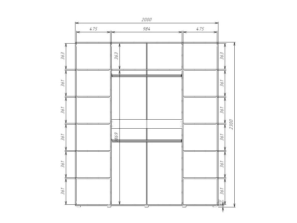 Шкаф Гранд ГШК/2-23-20-1111 (двери тип 1) с двумя зеркалами