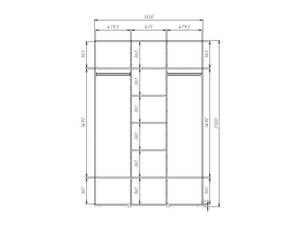 - Шкаф Гранд ГШК/3-23-15-222 (двери тип 2) с одним зеркалом