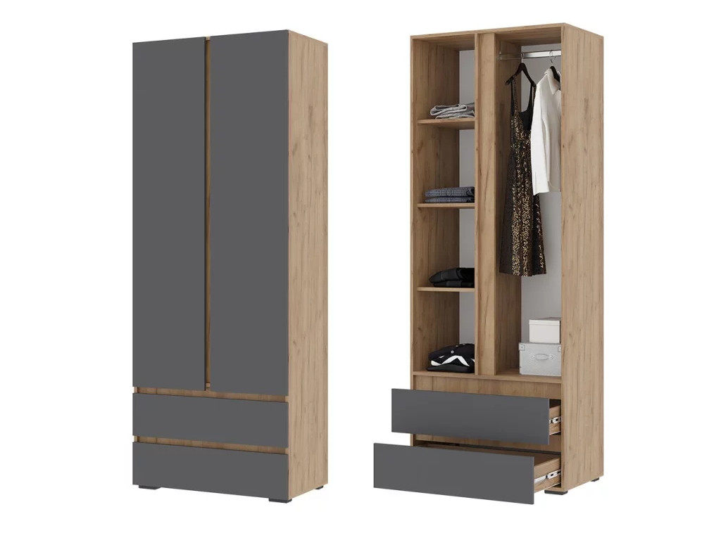 Шкаф Хелен 2-х створчатый ШК 01 Дуб крафт золотой-Серый графит