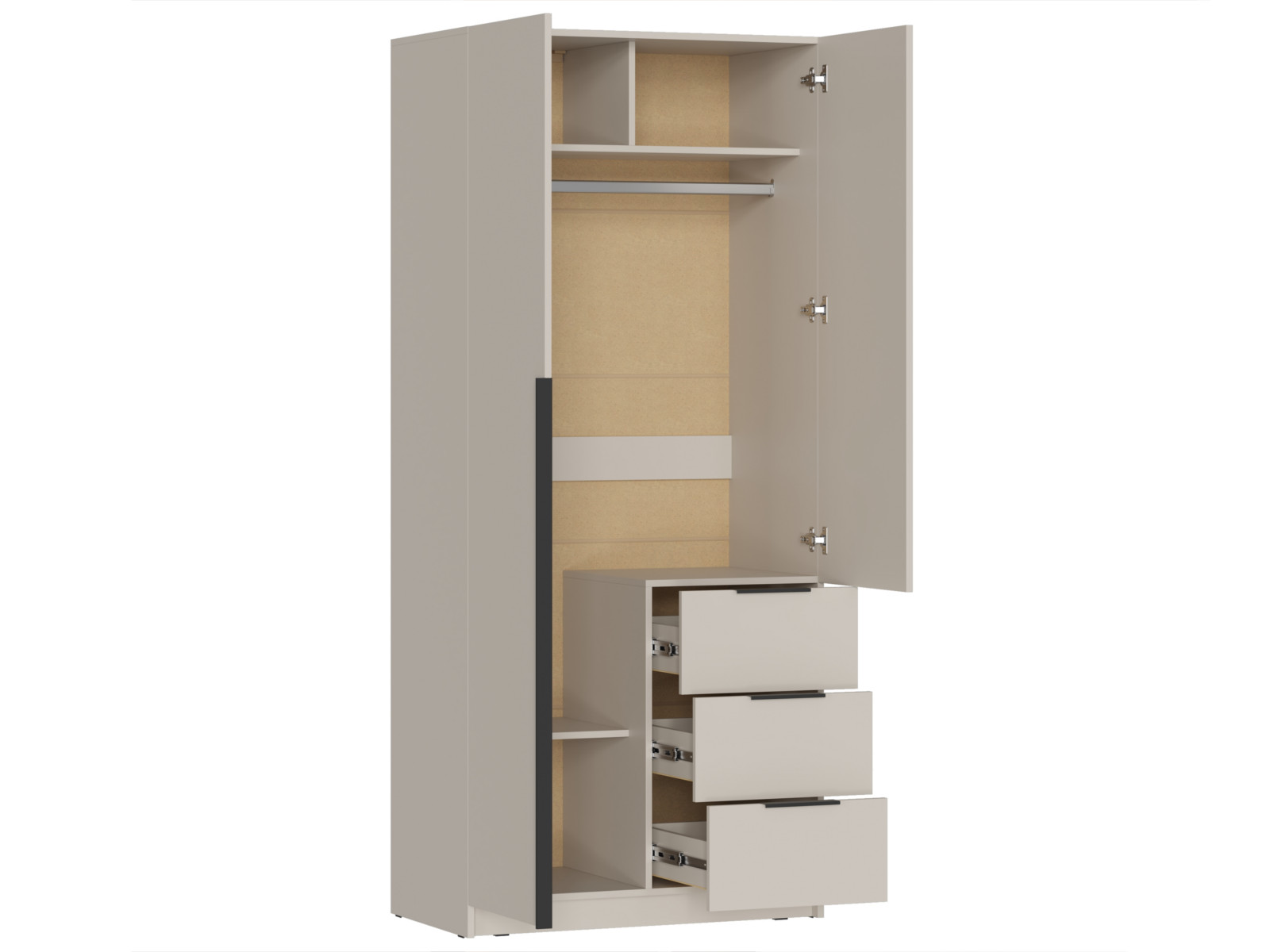 Дно ящиков – ХДФ простое (без цвета) – полностью накладное(набивное). - Также шкаф имеет две створки, за которыми расположены: