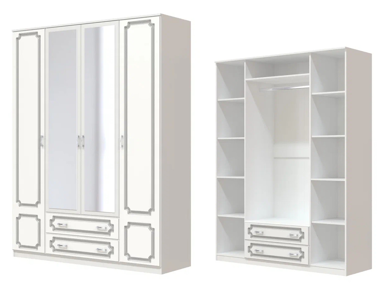 - Шкаф ШР-4 платье и бельё с зеркалом Лак Белый жемчуг