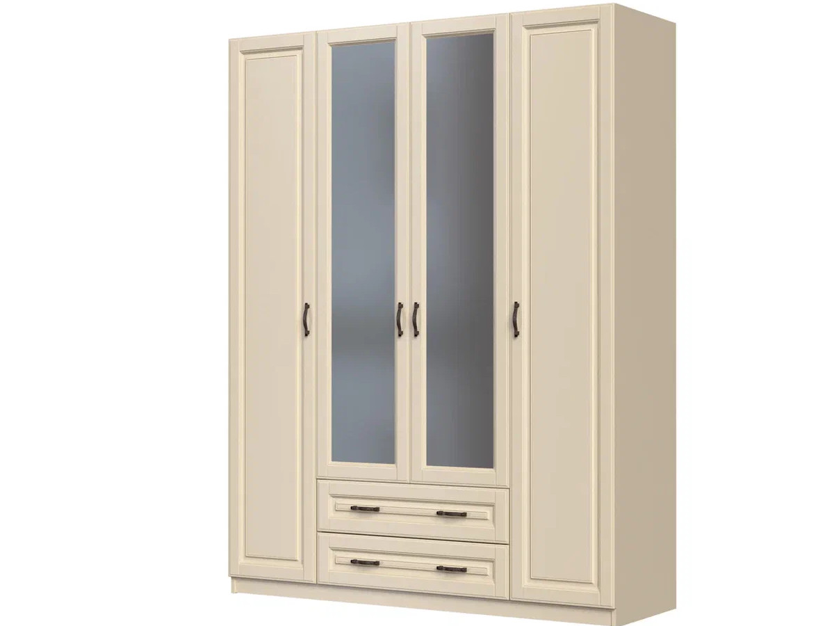 - Шкаф ШР-4 с зеркалом Кантри Слоновая кость