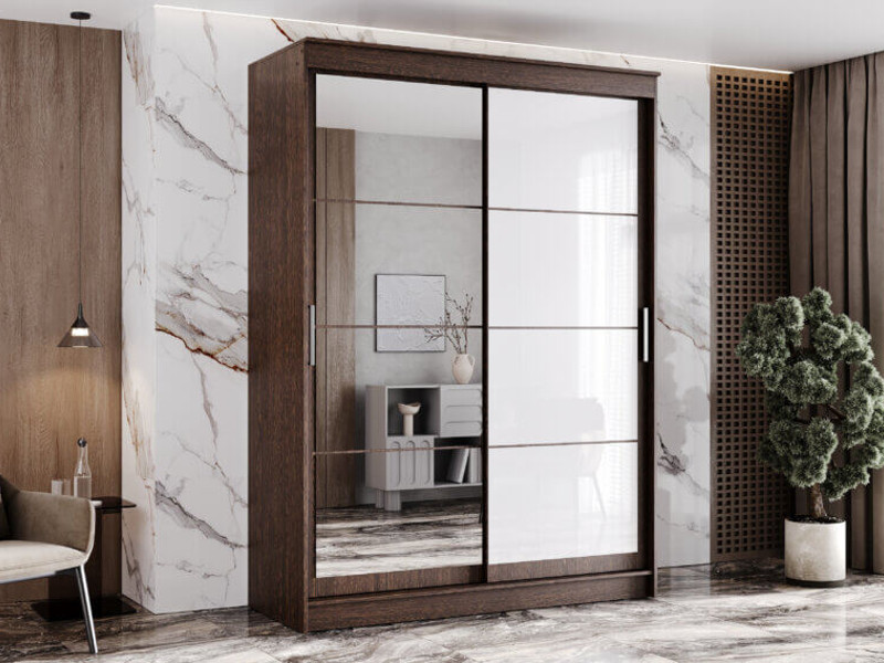 Шкаф-купе Гранд-1 1600 Дуб Венге-двери Зеркало-Лакобель белый