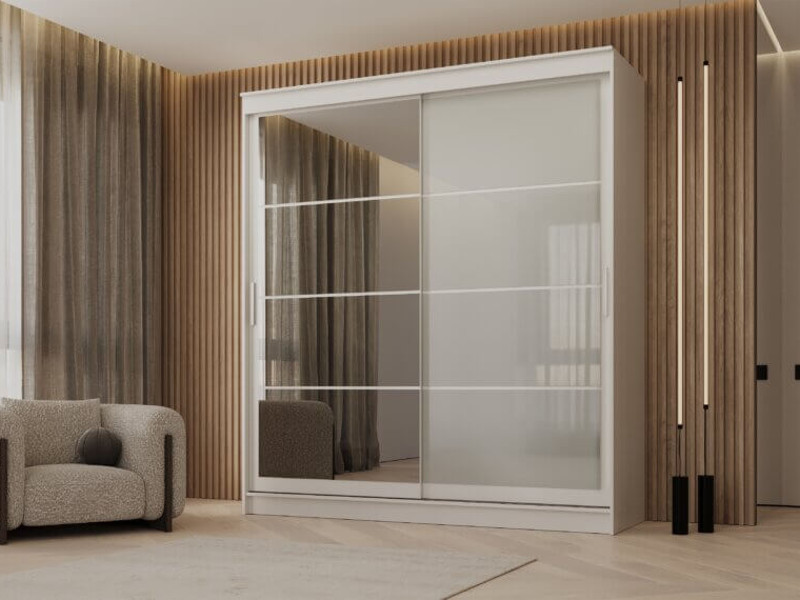 - Шкаф-купе Гранд-1 2000 Белый гладкий-двери Зеркало-Лакобель белый