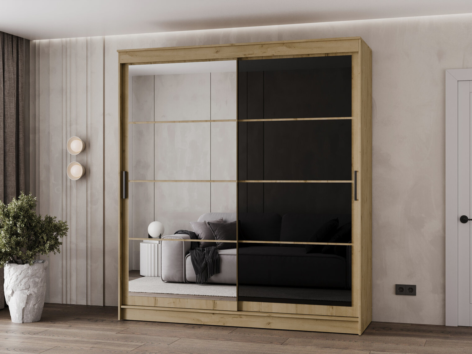 Шкаф-купе Гранд-1 2000 Дуб Вотан-двери Зеркало-Лакобель черный