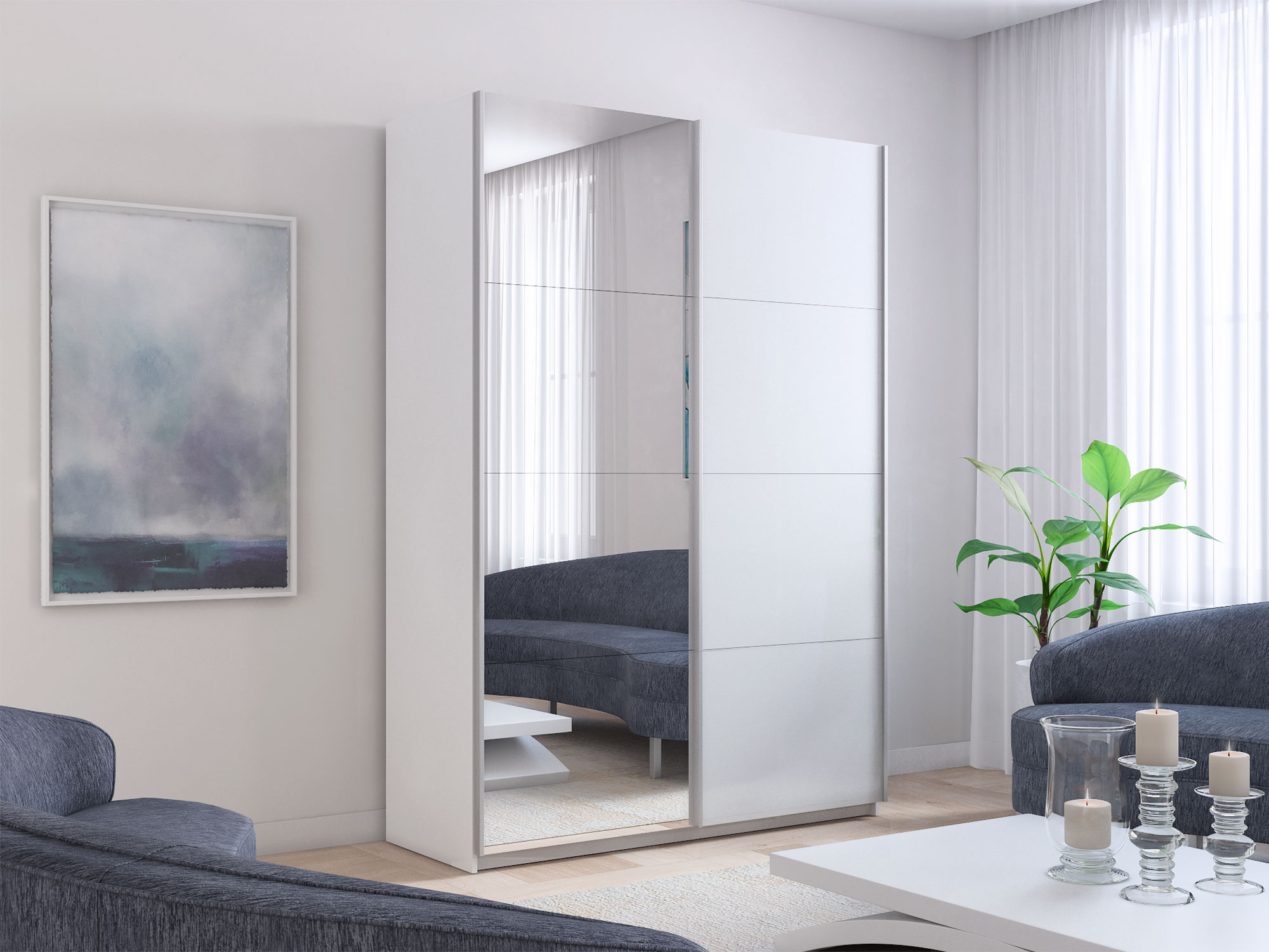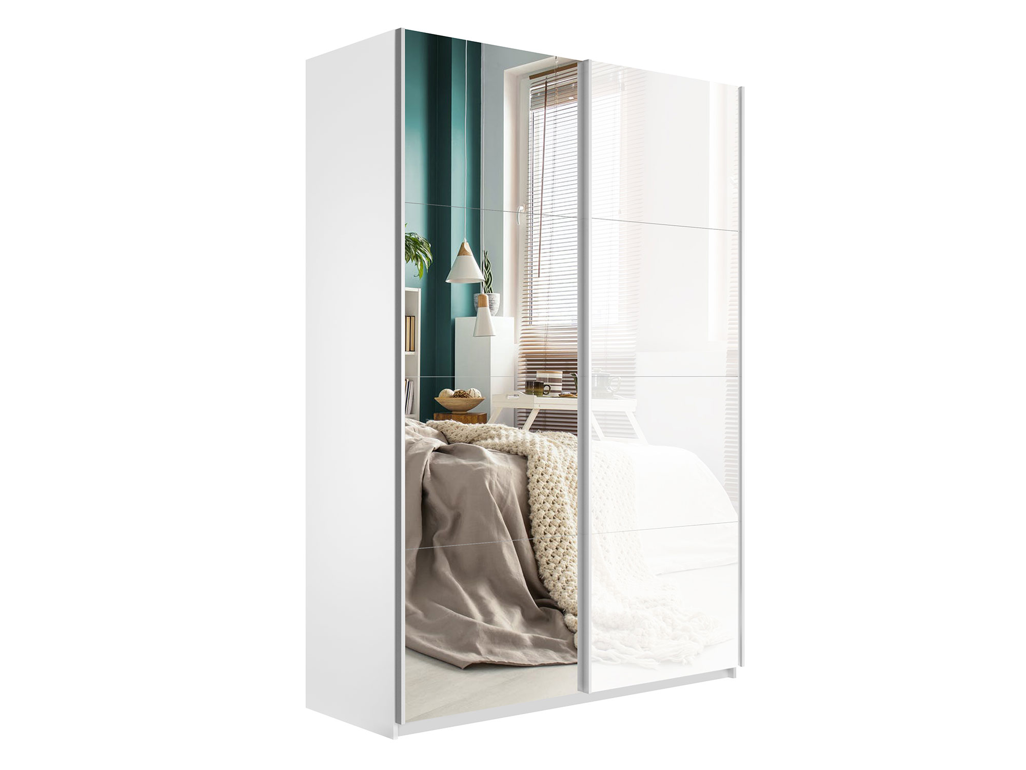 - Шкаф-купе Прайм 2-х дверный 1200 Зеркало/Стекло Белое Белый Снег