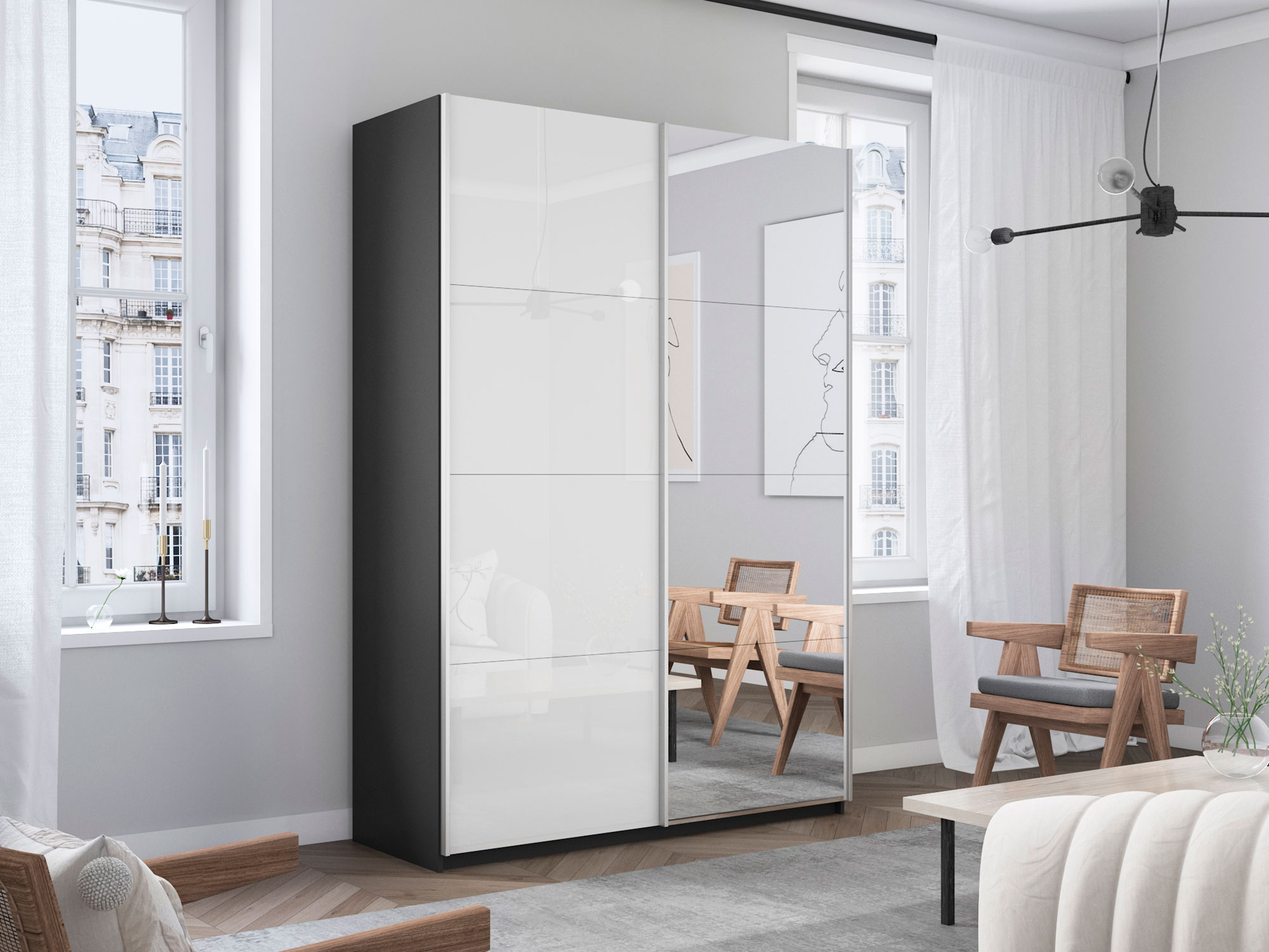 Шкаф-купе Прайм 2-х дверный 1200 Зеркало/Стекло Белое Серый Диамант