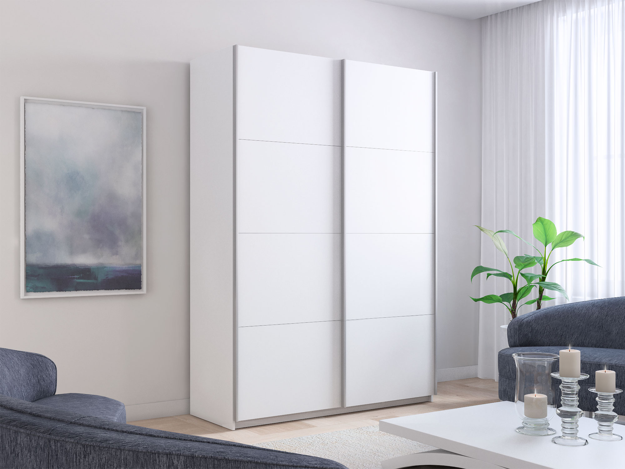 - Шкаф-купе Прайм 2-х дверный 1600 два ДСП Белый Снег