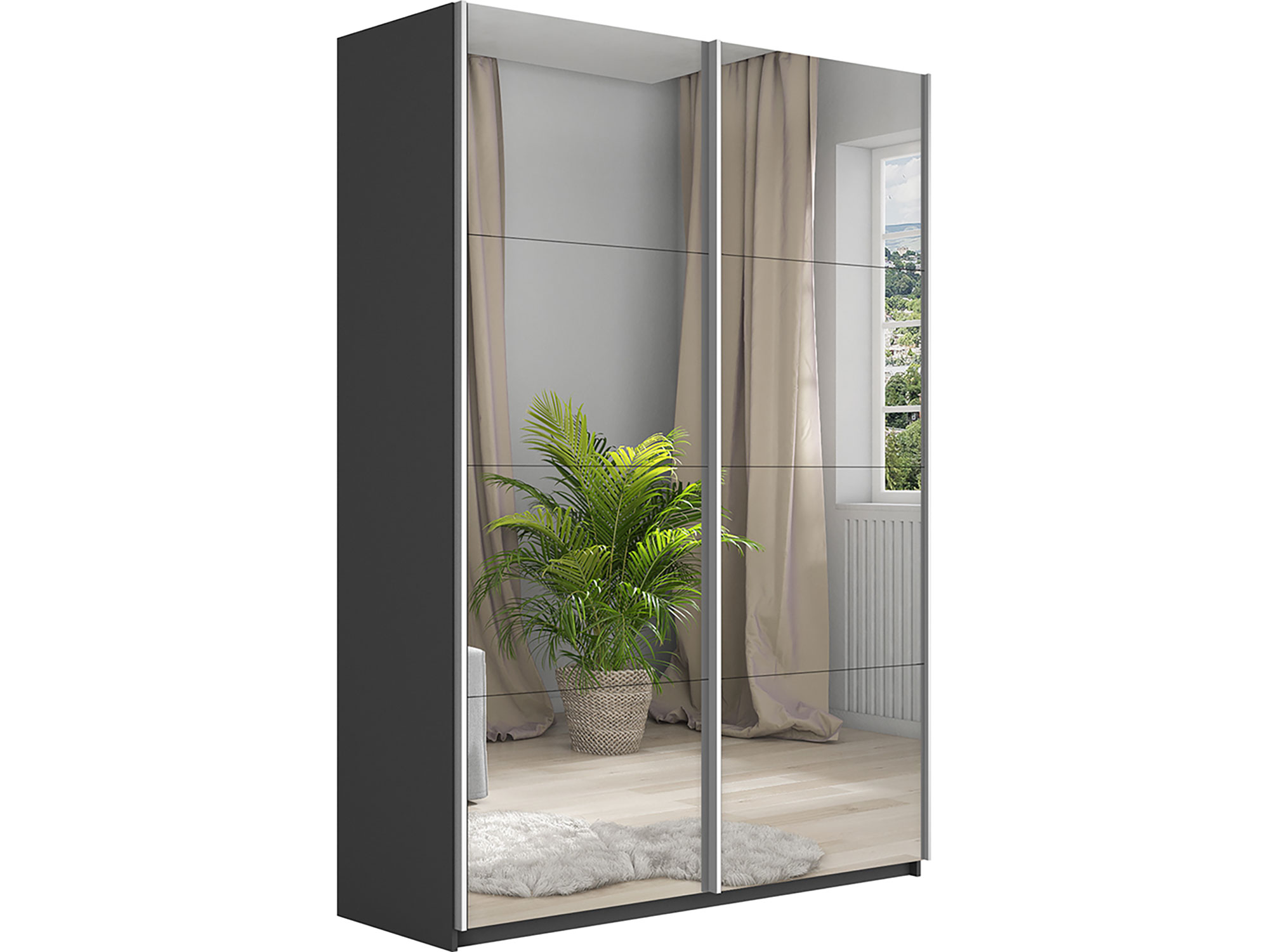 - Шкаф-купе Прайм 2-х дверный 1600 два зеркала Серый Диамант