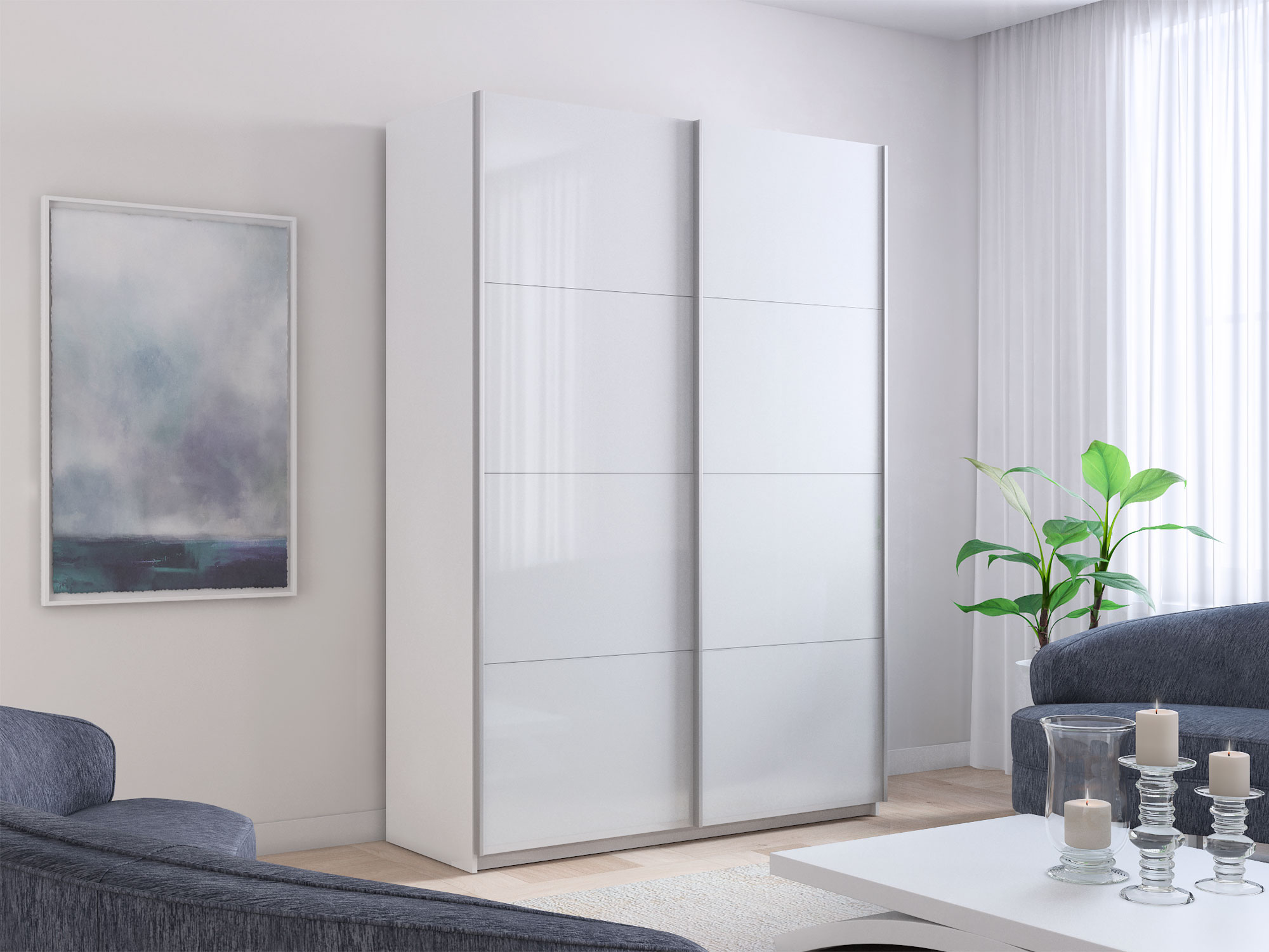 Шкаф-купе Прайм 2-х дверный 1600 Стекло Белое Белый Снег