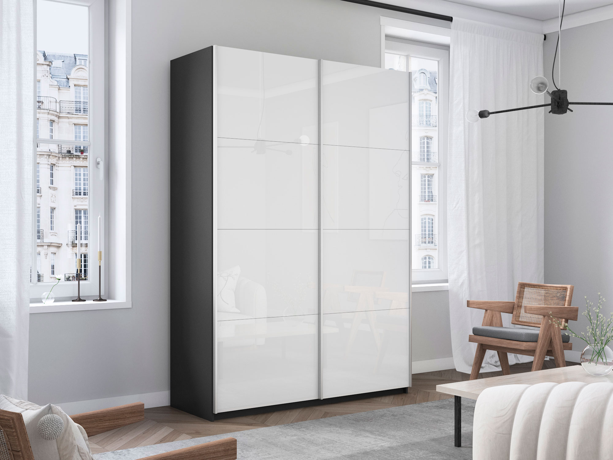 Шкаф-купе Прайм 2-х дверный 1600 Стекло Белое Серый Диамант
