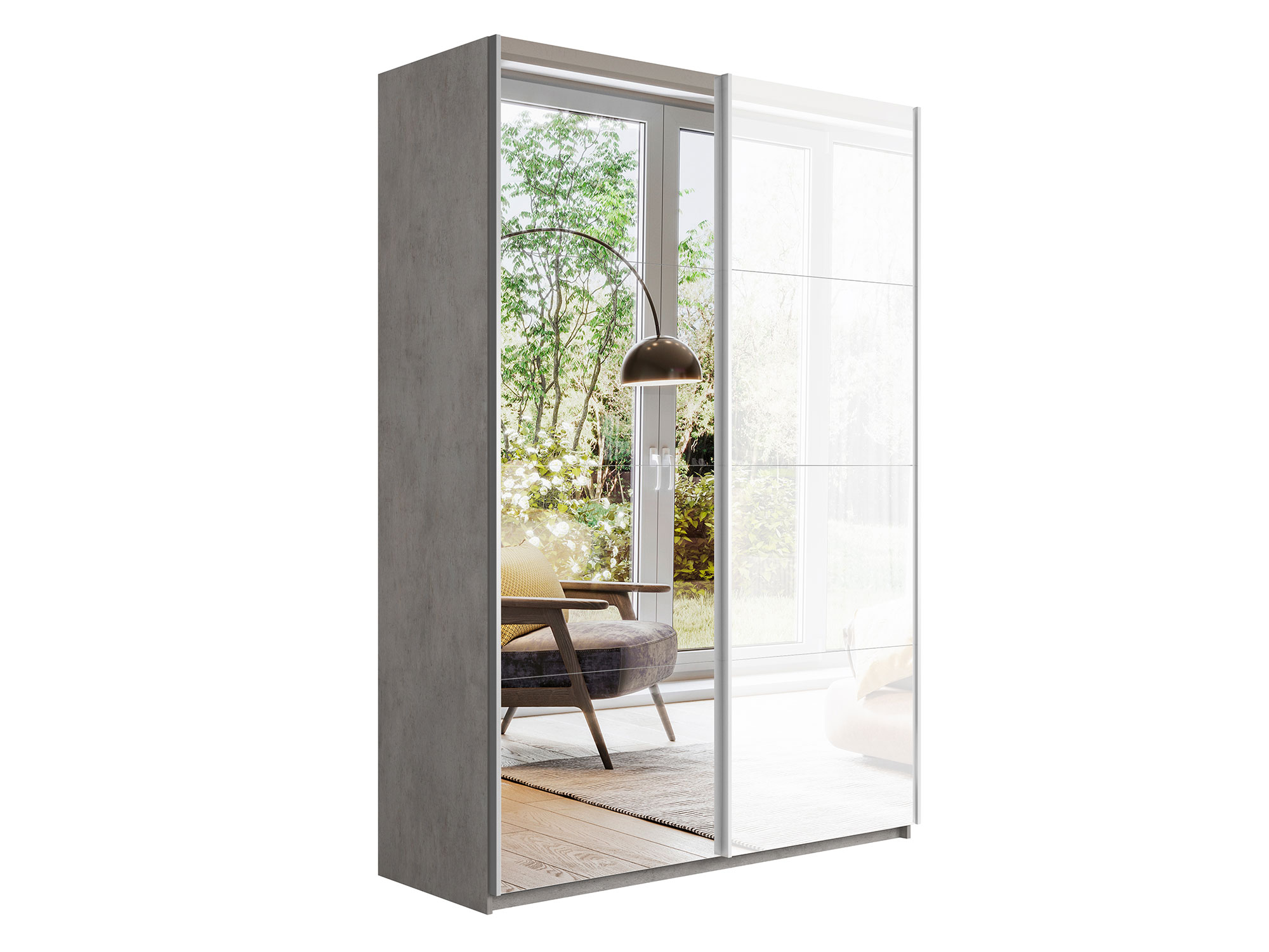 Шкаф-купе Прайм 2-х дверный 1600 Зеркало/Стекло Белое Бетон