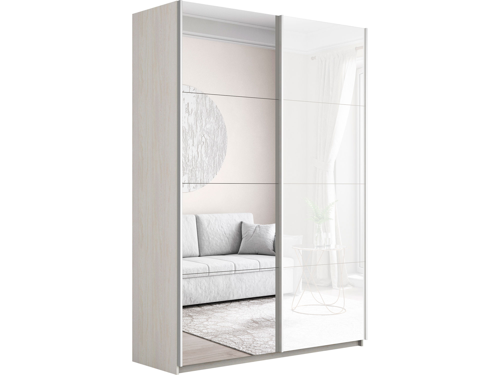 Шкаф-купе Прайм 2-х дверный 1600 Зеркало/Стекло Белое Ясень Анкор Светлый