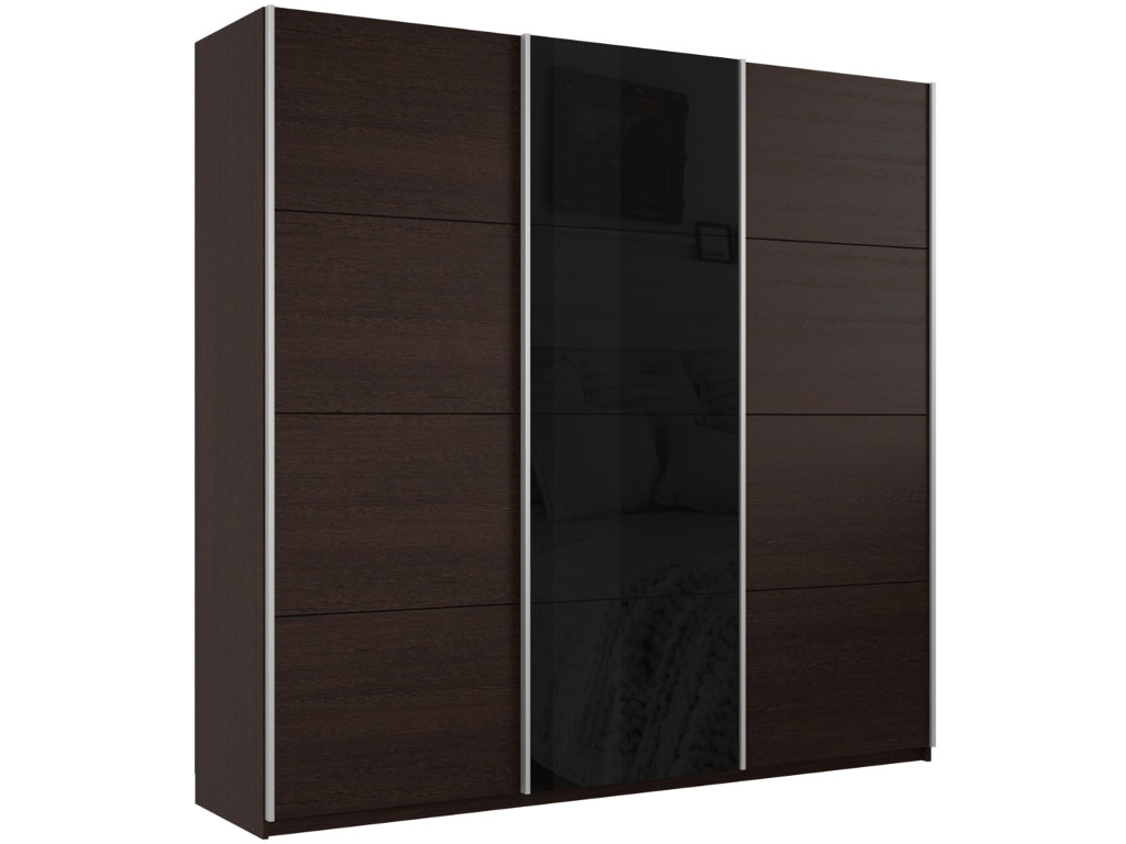 - Шкаф-купе Прайм 3-х дверный 1800 ДСП/Стекло Черное/ДСП Венге