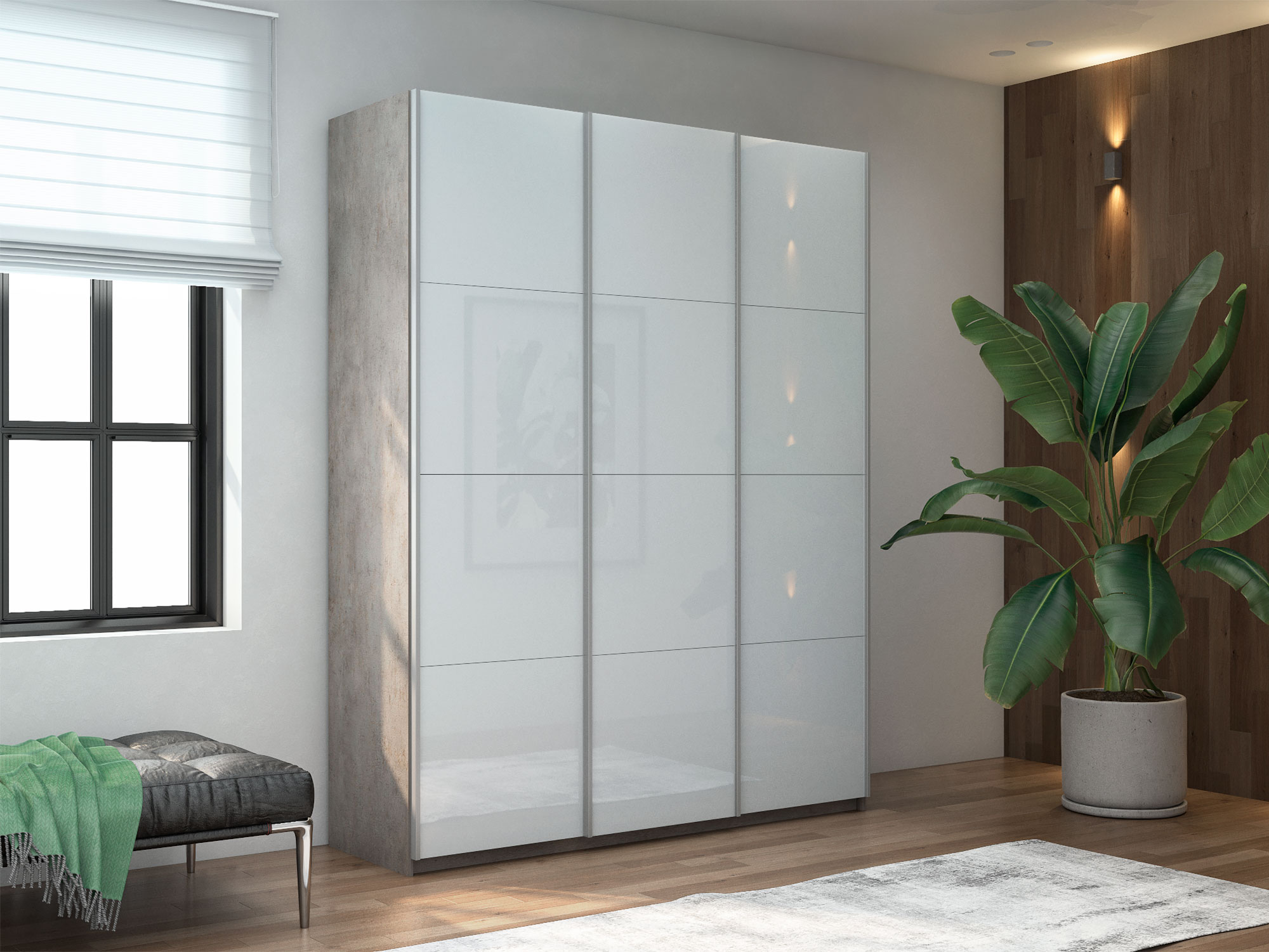 - Шкаф-купе Прайм 3-х дверный 1800 три стекла белые Бетон