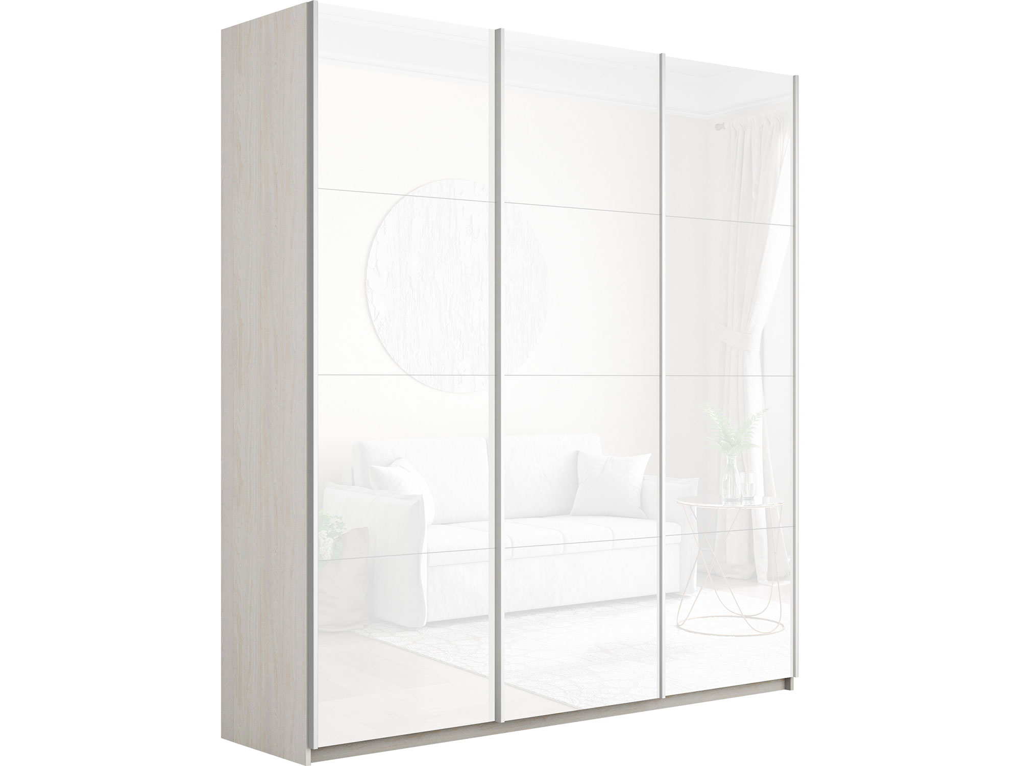 - Шкаф-купе Прайм 3-х дверный 1800 три стекла белые Ясень Анкор Светлый