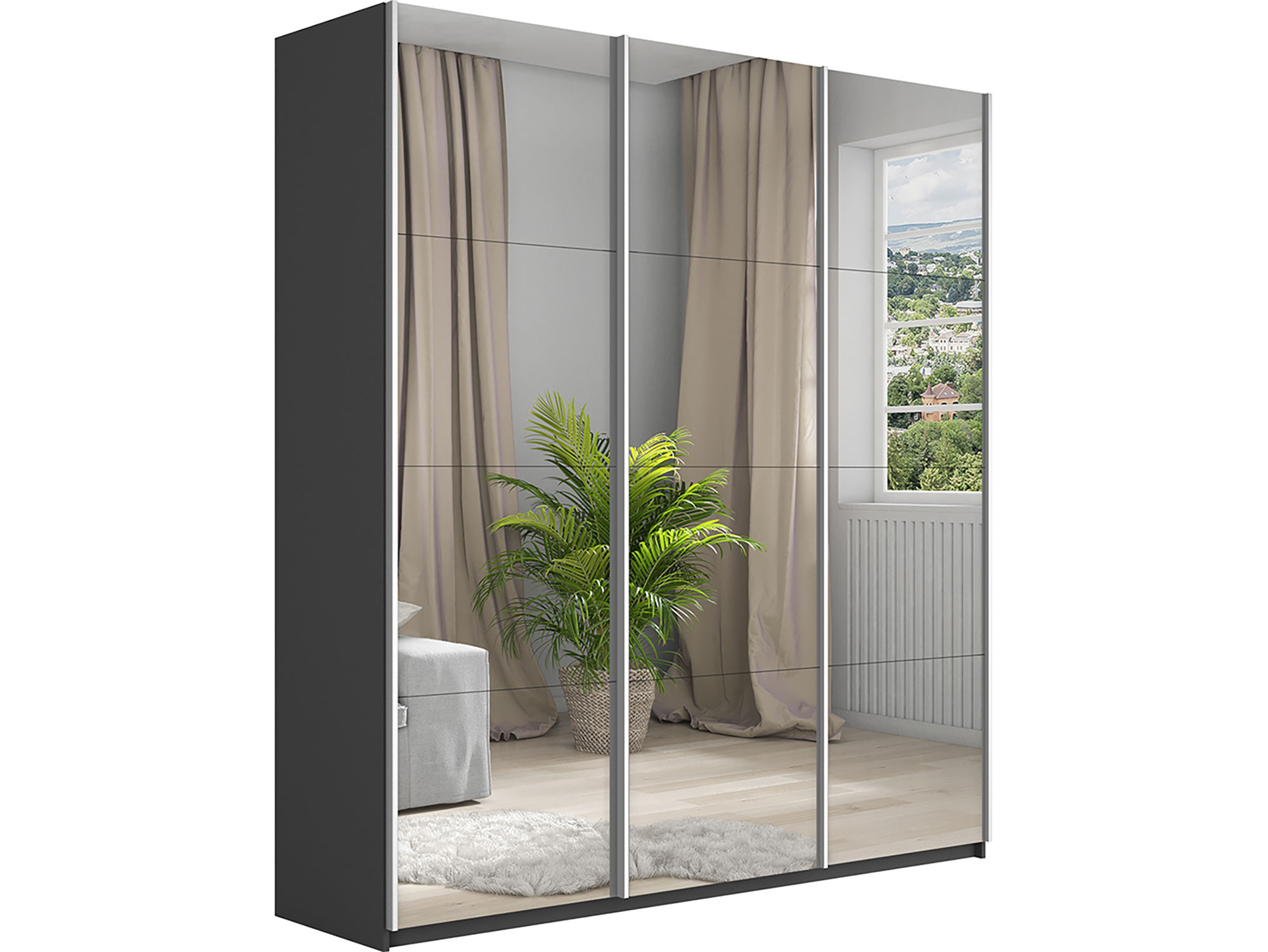- Шкаф-купе Прайм 3-х дверный 1800 три зеркала Серый Диамант