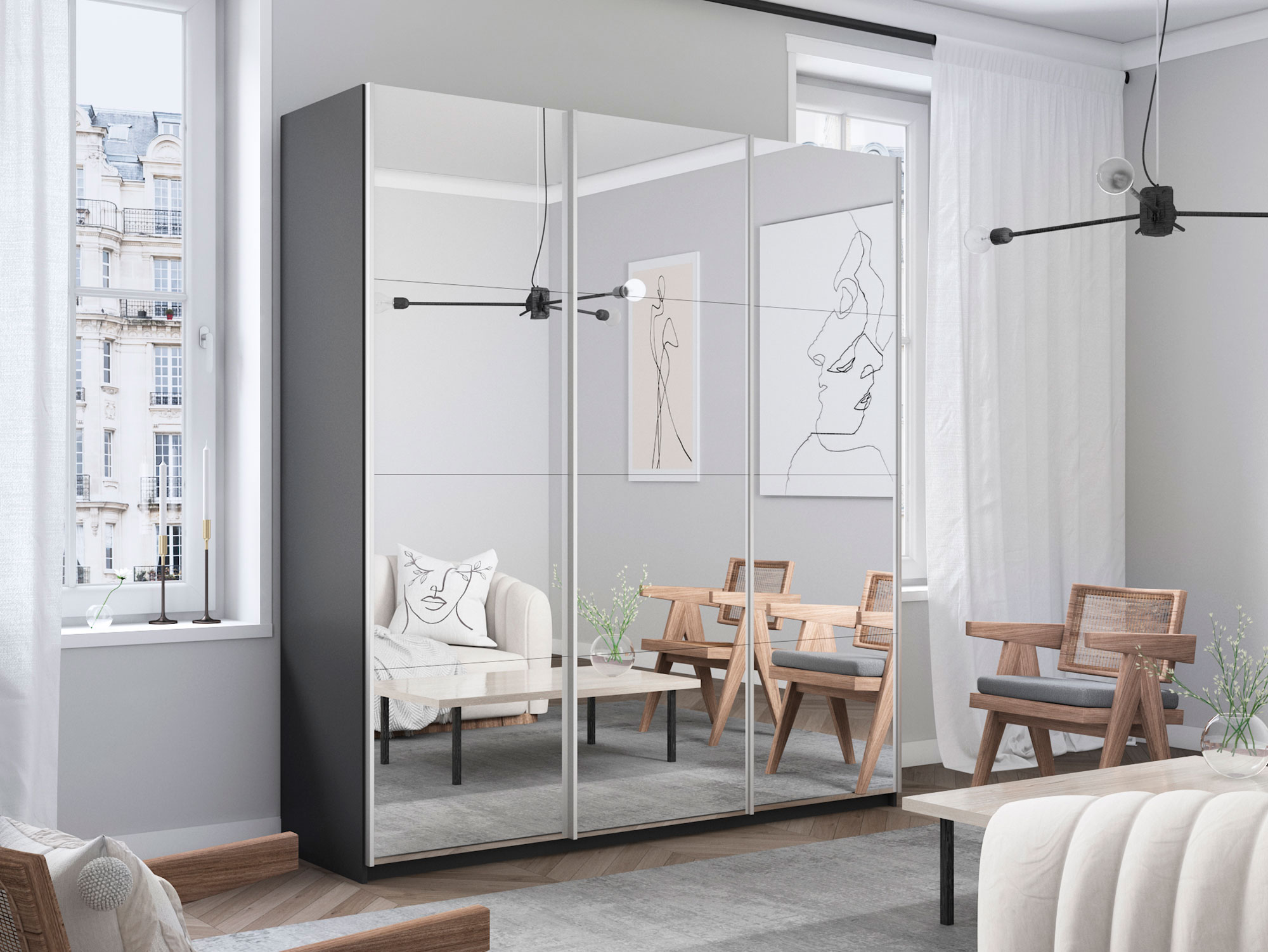 Шкаф-купе Прайм 3-х дверный 1800 три зеркала Серый Диамант