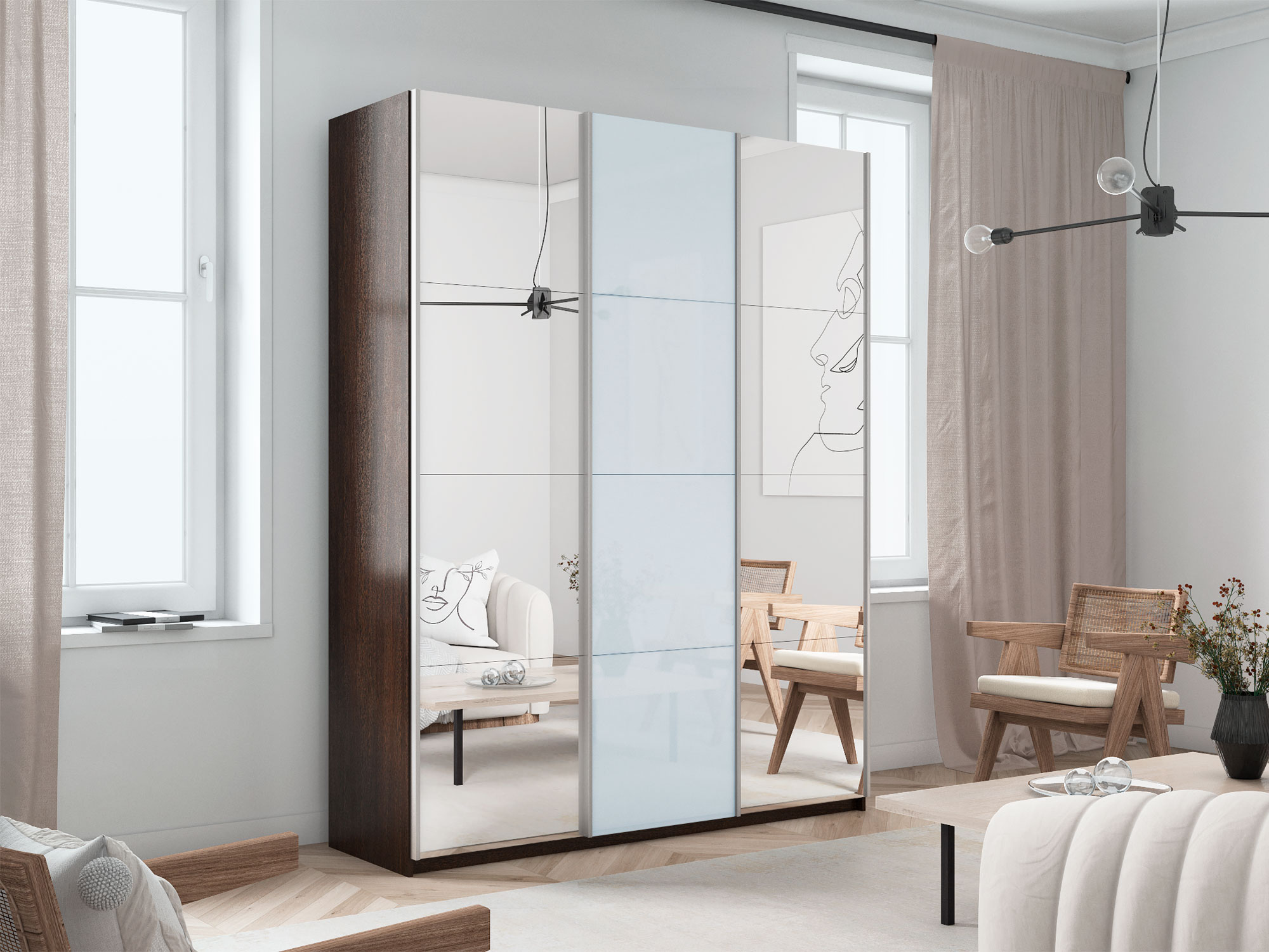 Шкаф-купе Прайм 3-х дверный 1800 Зеркало/Стекло Белое/Зеркало Венге