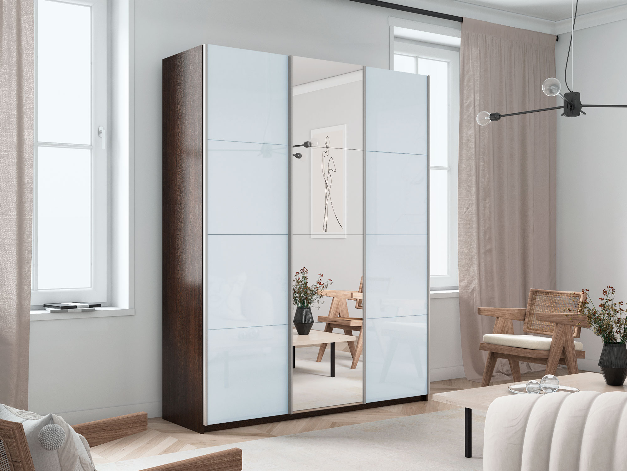 Шкаф-купе Прайм 3-х дверный 2100 два Стекла Белые/Зеркало Венге