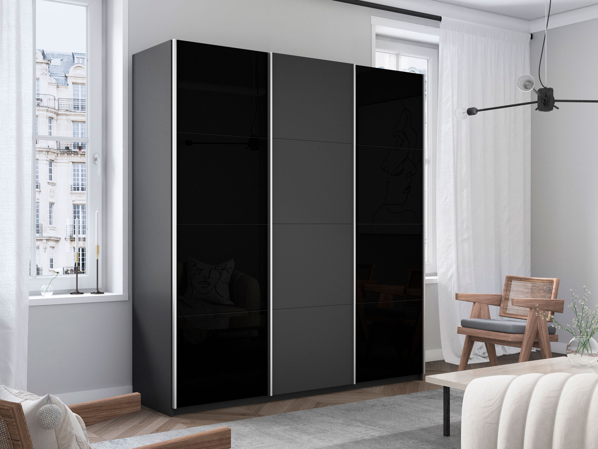 - Шкаф-купе Прайм 3-х дверный 2100 два Стекла Черные/ДСП Серый Диамант